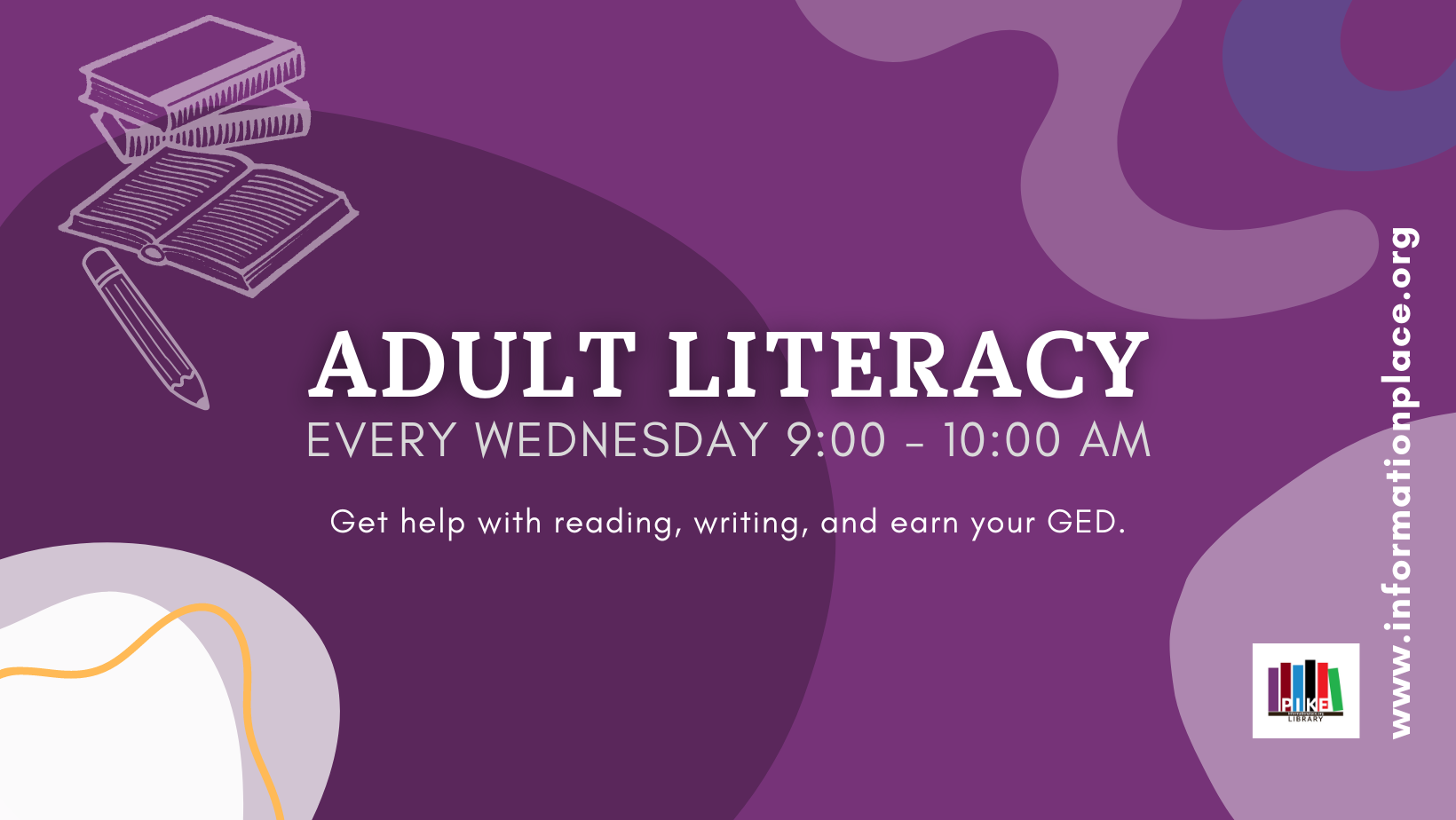 Develop basic literacy skills in this class at the Pike County Public Library (Lee Avenue). Meets every Wednesday at 9:00 AM.